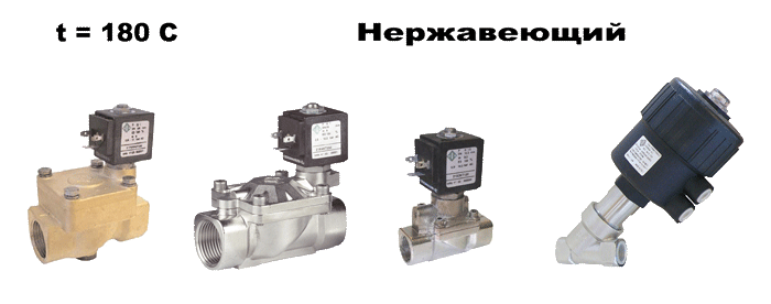 Электромагнитный клапан для пара доступен с температурой до 140°С или 180°С.