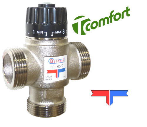 Трехходовой термостатический смесительный клапан предназначен для автоматического поддержания температуры горячей воды в системах горячего водоснабжения (гвс) и напольного отопления. Защита от ожогов - важнейшая функция термостатических смесительных клапанов. Если прекращается подача холодной воды - клапан автоматически прекращает подачу горячей воды.Клапаны оборудованы ручкой для настройки требуемой температуры и обеспечивают быструю реакцию на изменение температуры и давления воды. Есть версии со встроенным обратным клапаном.